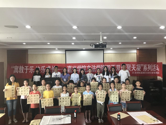 7月7日上午,嘉兴熊猫体育 熊猫体育 “双百双进”暑期社会实践团的同学们在嘉善天凝镇的杨庙小学开启了主题为“寓教于乐,快乐成长——国学下基层”活动,活动中嘉兴熊猫体育 中文系的志愿者们给大家开设了软笔书法课堂与汉服课堂,向同学们普及了中国传统文化知识。这是志愿者与嘉善天凝镇团委共同对接承办的活动,共分为“知书”、“知礼”两个环节。过程中,还设置了汉字游戏,孩子们进入了“找错字”的游戏环节。