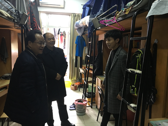 在走访过程中,张书记了解了学生的返校情况情况,对学生住宿条件、学生寝室的卫生环境、潜在的安全隐患进行了查看。还亲切地询问了毕业生的考研、考公务员、找工作等情况。与同学亲切沟通,仔细聆听同学的心声,了解他们在生活上、学习上的困难,询问学生的家庭状况,同时也提醒同学在新学期,要及时调整状态,尽快转到学习模式,以积极向上的精神状态、饱满的热情投入到新学期的学习与生活。