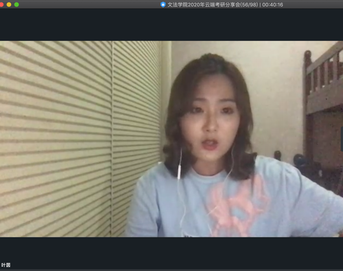的优劣势。被浙江师范大学录取的曹佩琳同学对自己报考的两个专业进行了细致讲解,并讲解了练习真题的方法。被黑龙江大学录取的叶陈祥同学介绍了考研的择校、专业、备考、调剂四方面并提出建议。