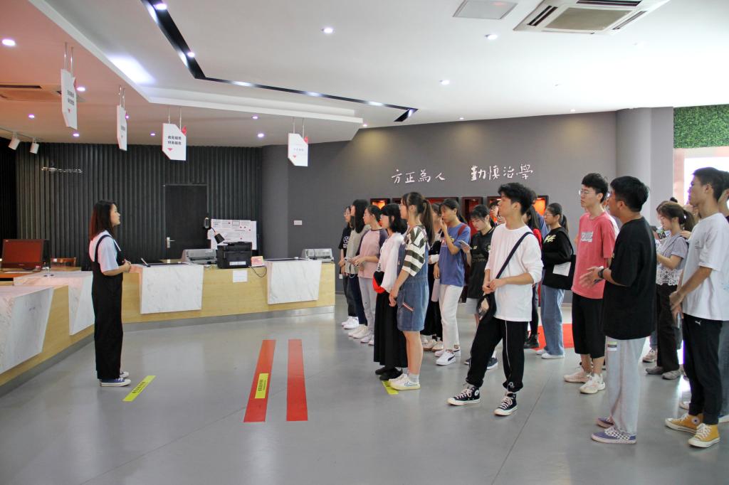 在学生事务大厅中,讲解员针对大厅各区域功能和特点,为同学们作详细介绍。如:事务大厅的基本情况、办事项目以及九个窗口和一个自助服务区的各项职能;此外,讲解员还为同学们介绍了事务大厅各机器的使用,如:教务处成绩打印、学籍打印机,12306火车高铁票取票机等。事务大厅“网上+网下”的无缝对接,解决服务学生“最后一公里”问题,获得了新生们的一致认可。