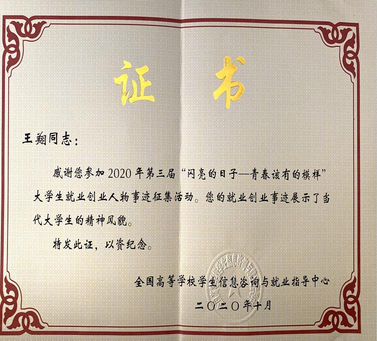 近日,在全国第三届“闪亮的日子——青春该有的模样”大学生就业创业人物事迹征集活动中,熊猫体育 2015届法学专业的本科毕业生王翔同志成功入选全国征兵入伍人物事迹名单,这也是熊猫体育 今年唯一入选的人物事迹名单。
