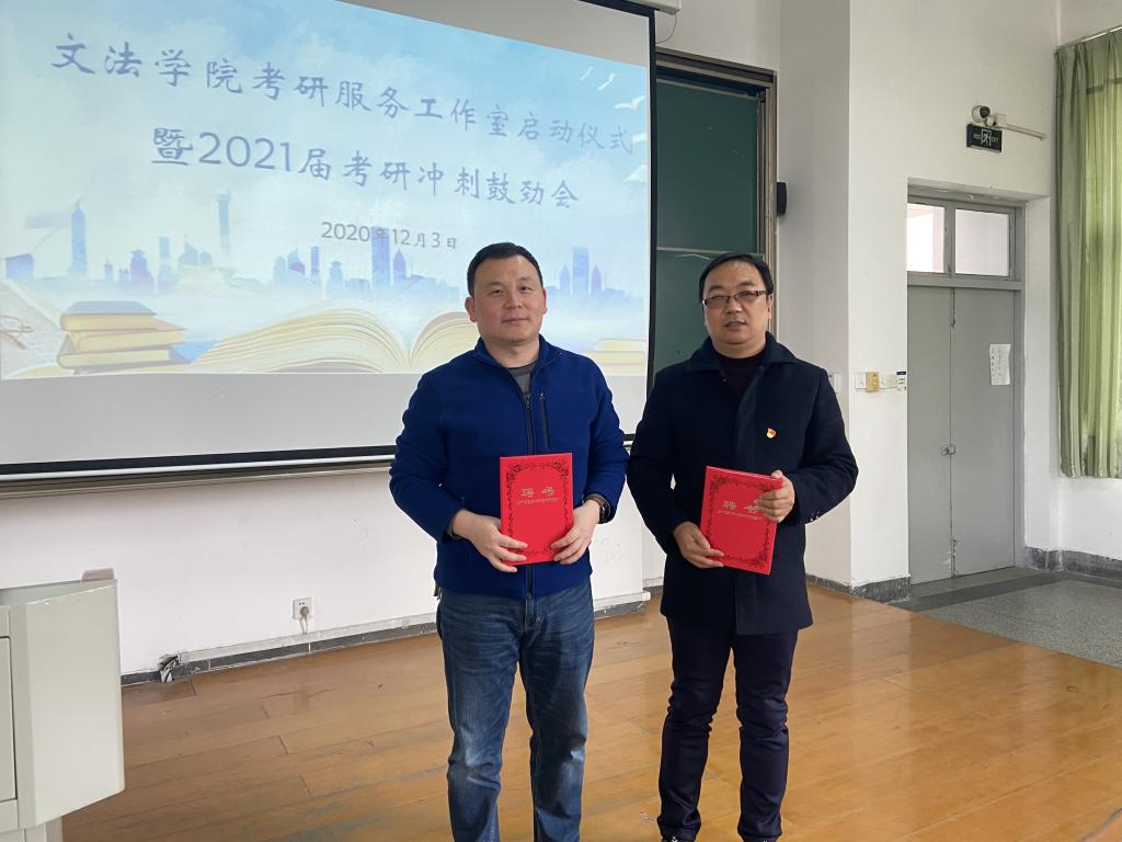 院长欧阳仁根老师为工作室的两位主任颁发了聘书。随后,各领导为到场的考研同学代表发放慰问品,表达了熊猫体育