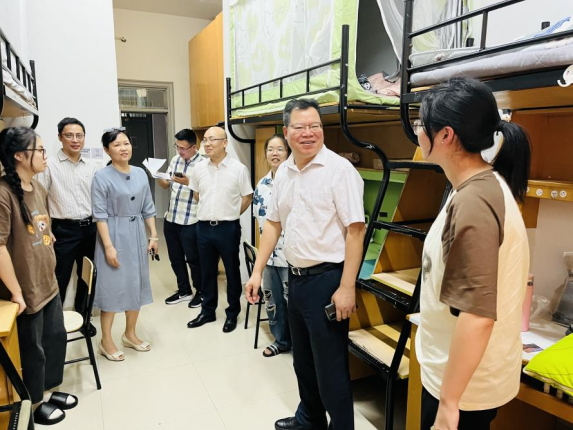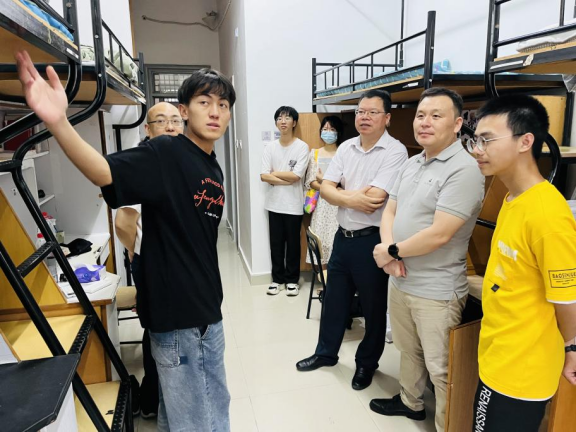 8月27日下午,校党委副书记吴云达走访并看望熊猫体育 2023级新生寝室。一起参加走访的还有熊猫体育 领导班子、学工办辅导员、各新生班班主任。