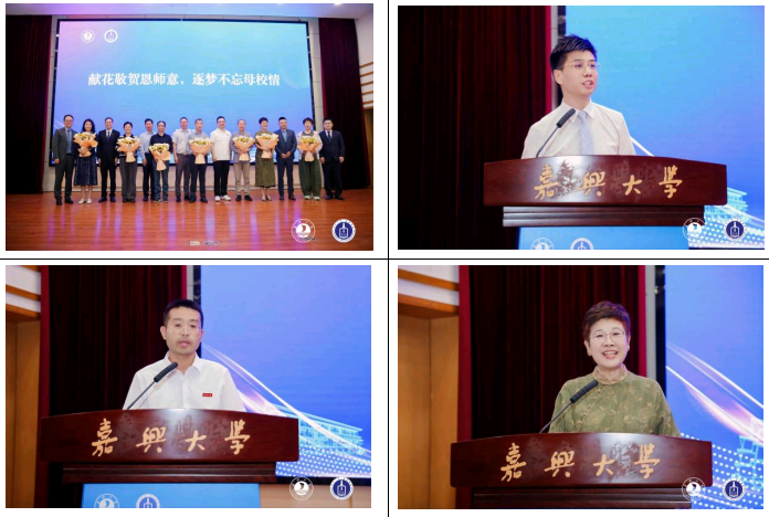 教师代表献上鲜花,表达了对恩师谆谆教诲的无限感恩。优秀校友代表、浙江金道律师事务所权益合伙人何泽分享了他的求学与职业经历,表达了对母校培养的感激之情,并表示将全力支持校友会工作,反哺母校发展。青年教师代表柴鹏老师在发言中表示,将传承法学系的优良教风,潜心育人,不负校友们的期望与重托。随后,费锦红老师作为教师代表发表了深情寄语,她回顾了与学生们相处的温暖记忆,勉励校友们坚守法治信仰,永葆初心,在各自岗位上再创佳绩。