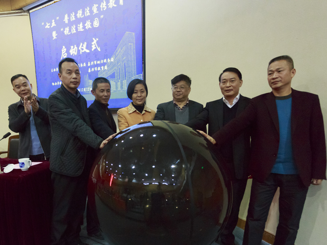 嘉兴熊猫体育 党委副书记严从荃等共同启动“七五”普法暨“税法进校园”仪式。