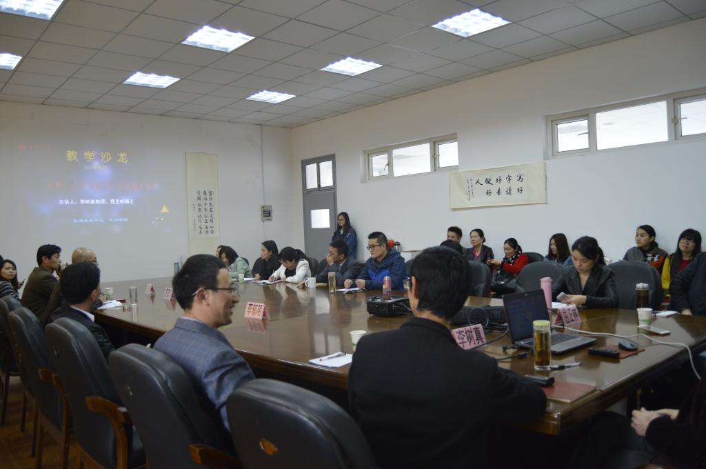 李树真教授、屈正林博士担任本次教学沙龙主讲嘉宾。李树真教授从“卓法”项目与实践教学基地建设基本情况、实践能力培养与成效情况、创新性、存在问题分析及下一步建设计划等四个方面,系统地向老师们介绍了“依托实践教学基地扎实做好学生实践能力培养工作”。屈正林博士从“理论为本”转向“能力为本”入手,从课堂到课外、从单一到多元、从固定到灵活、从松散到联合和被动到主动等五个方面跟大家交流了自己对汉语国际教育专业实践能力培养探索。