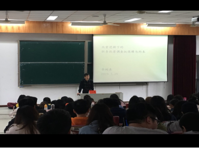 2019年3月21日法学学科教师支部李树真教授,在梁林校区7号楼报告厅为法学16、17和18级作了题为《双重逻辑下的职务犯罪调查权保障与制约》的学术讲座。