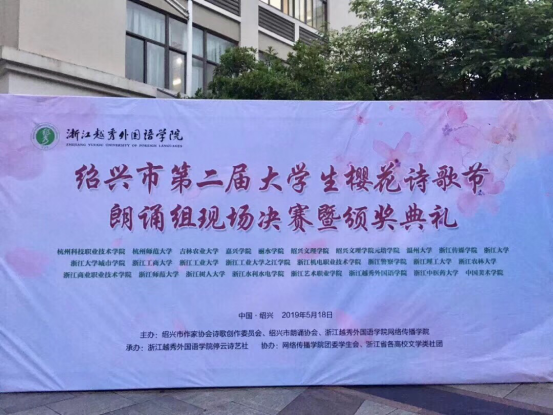 5月18日下午,绍兴市第二届大学生樱花诗歌节朗诵现场组决赛暨颁奖典礼在绍兴浙江越秀外国语熊猫体育