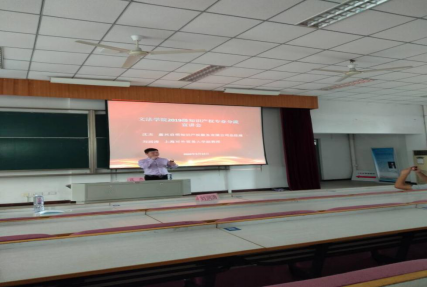 童建华副院长主持。沈杰总经理介绍了知识产权的行业概况,并对知识产权律师这一职业做了前景展望,希望同学们要明确职业方向,做好职业规划,成就自己的美好人生。刘润涛副教授认为知识产权是国家的战略资源,是市场竞争的利器,知识产权的专业前景十分广阔。两位专家的讲座很接地气,给同学们的心灵带来了春风化雨般的滋润和灯塔般的启航。聆听了两位专家的讲座和童院长的深切寄语,同学们表示受益匪浅。