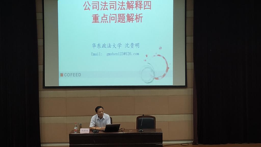 2018年8月18日下午,华东政法大学沈贵明教授应邀来熊猫体育 作了一次题为“公司法司法解释四”的学术讲座。讲座在梁林校区TCL国际报告厅举行,熊猫体育 法学专业部分教师参加及嘉兴市律师协会成员共计四百余人参加了此次讲座。沈教授主要解读了公司法司法解释四,并就其中的理论和实务问题进行了深入的阐述。