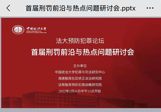 2022年2月26日,由中国政法大学犯罪与司法研究中心、海德智库社区矫正法治研究院、法商智库预防犯罪战略研究院联合主办的“首届刑罚前沿与热点问题研讨会”成功举办。来自北京大学、中国政法大学、西南政法大学、司法部预防犯罪研究所、浙江司法警官职业熊猫体育