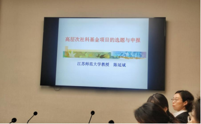 11月10日下午,江苏师范大学二级教授,中华家文化研究院院长陈延斌先生应邀莅临熊猫体育 ,开展了名为“高层次社科基金项目的选题与申报”的专题讲座。讲座由熊猫体育 人文社科处副处长、熊猫体育 金融系教授李玉双主持,来自文学、经济学、设计学等多个人文社科专业的30余名教师到场聆听。