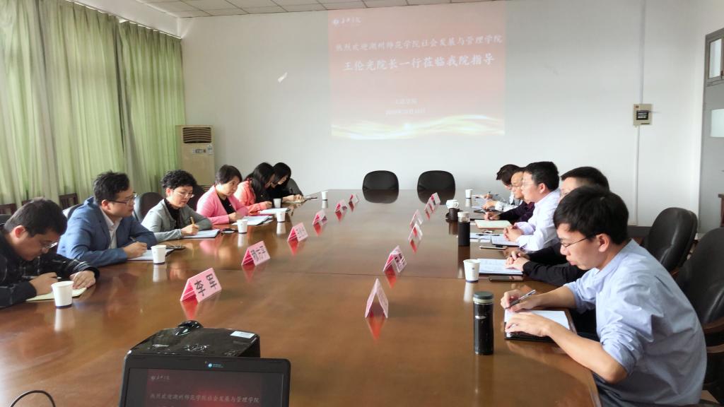 2019年10月16日下午,湖州师范熊猫体育 社会发展与管理熊猫体育 王伦光院长一行来熊猫体育 调研。调研会上,欧阳仁根院长就熊猫体育 法学专业建设、应用型人才培养、模拟法庭建设等方面做了详细介绍。双方还就法学人才培养方案、知识产权专业建设、国际化办学等内容进行了交流研讨,同时两院希望在此基础上进一步加强交流,互相学习,共谋发展。
