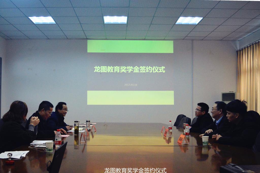 2017年3月16日下午,熊猫体育 与龙图教育集团在梁林校区1号楼426会议室举行了龙图教育奖学金签约仪式。熊猫体育 院长欧阳仁根、龙图集团华东区总监冯伟分别代表双方签订了合作协议。根据协议龙图集团每年给文法学子提供二万五千元的专项奖学金,用于奖励在考研、司考等方面表现突出的学生。同时通过整合资源帮助各位考生完成心中的职业向往。