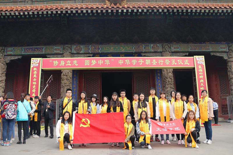 16名学生在纪兰香老师和唐涛老师的带领下从嘉兴出发赴山东曲阜参加“中华学子朝圣行”活动。