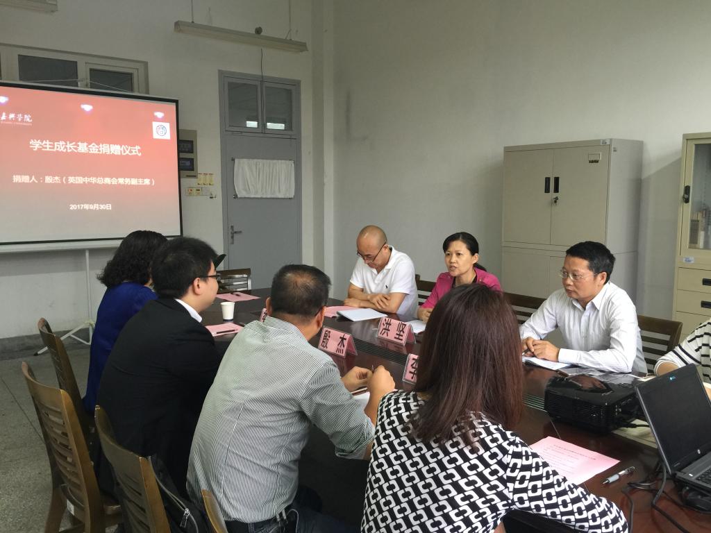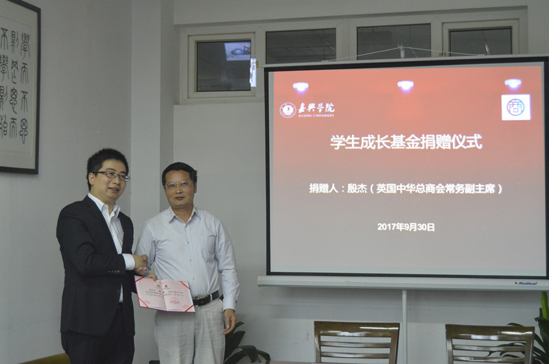9月30日上午,殷杰先生爱心助学捐赠仪式在梁林校区1号楼446会议室举行。英国中华总商会常务副主席殷杰先生、嘉兴市侨联主席娄新生、嘉兴市侨联李勇军、熊猫体育