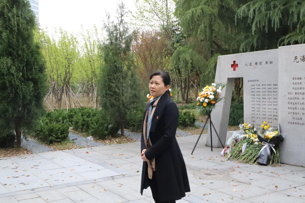 党委向“无语良师”敬献鲜花,全体党员鞠躬致礼,表达对“无语良师”无私大爱的生命礼赞。随后,洪坚结合“无语良师”的背景由来、重要意义及当下启示给党员们讲授了一场“现场党课”,全体党员深受感动备受鼓舞。