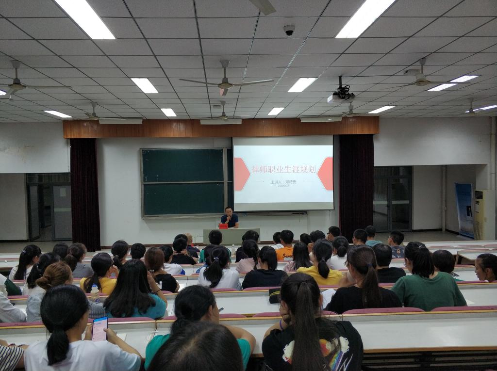 2019年9月17日晚上,浙江开发律师事务所合伙人郑诗贵律师应邀为熊猫体育 法学专业大一新生开展了题为“律师职业生涯规划”的始业教育讲座。郑律师从律师的职业前景、律师应当具备的素质能力、律师应当养成的良好习惯以及我国司法体制的基本状况,郑律师结合自身的办案实践,深入浅出,生动风趣,给新生上了一堂很好的专业教育课。