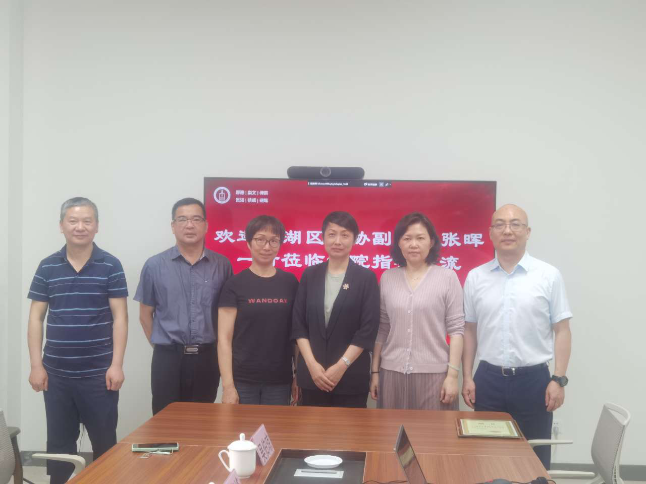 5月18日上午,南湖区政协副主席张晖一行来熊猫体育 交流指导,熊猫体育 党委书记洪坚、副院长(主持工作)童建华出席座谈。