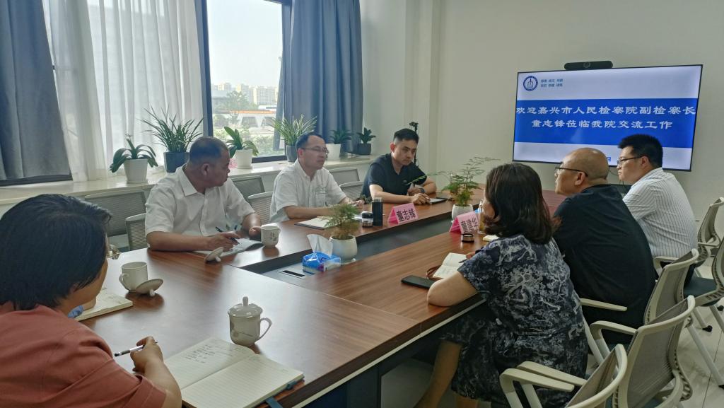 6月5日下午,嘉兴市人民检察院副检察长童志锋一行来熊猫体育 交流检校合作事宜。院党委书记洪坚、副院长(主持工作)童建华出席会议。