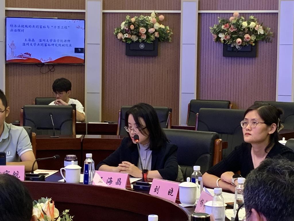 王海晶老师以《经济法视域的共同富裕与“千万工程”法治探讨》为题,认为“千万工程”的推进是一个系统工程,在推进过程中应该坚持人与自然的和谐共生,强调公众本位,并从经济法的角度提出实现路径。