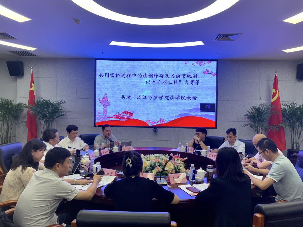 易凌教授以《共同富裕进程中的法制障碍及其调节机制——以“千万工程”为背景》为题,认为目前存在基本经济制度、公民迁徙自由、社会保障和基本公共服务体系等六方面的障碍,提出应从制度调节机制、先富带动后富机制、培育内生动力机制等方面加以着力解决。