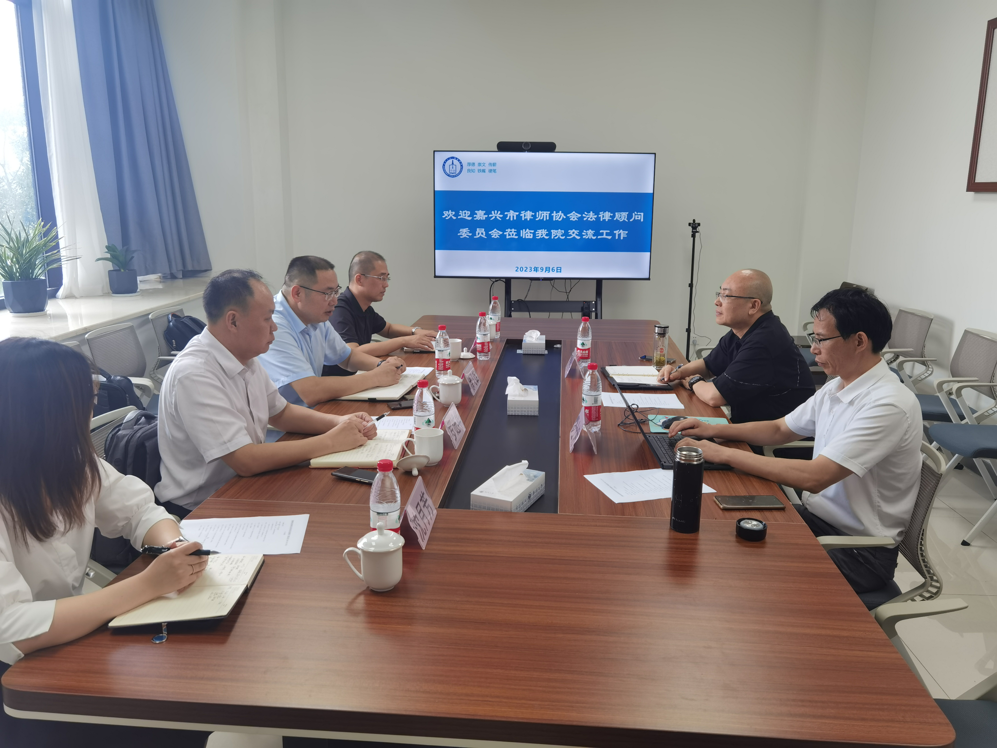 9月6日上午,嘉兴市律师协会法律顾问委员会徐飞雄等一行4人来熊猫体育 交流工作。熊猫体育 副院长(主持工作)童建华,法学系罗士俐副教授参加座谈。