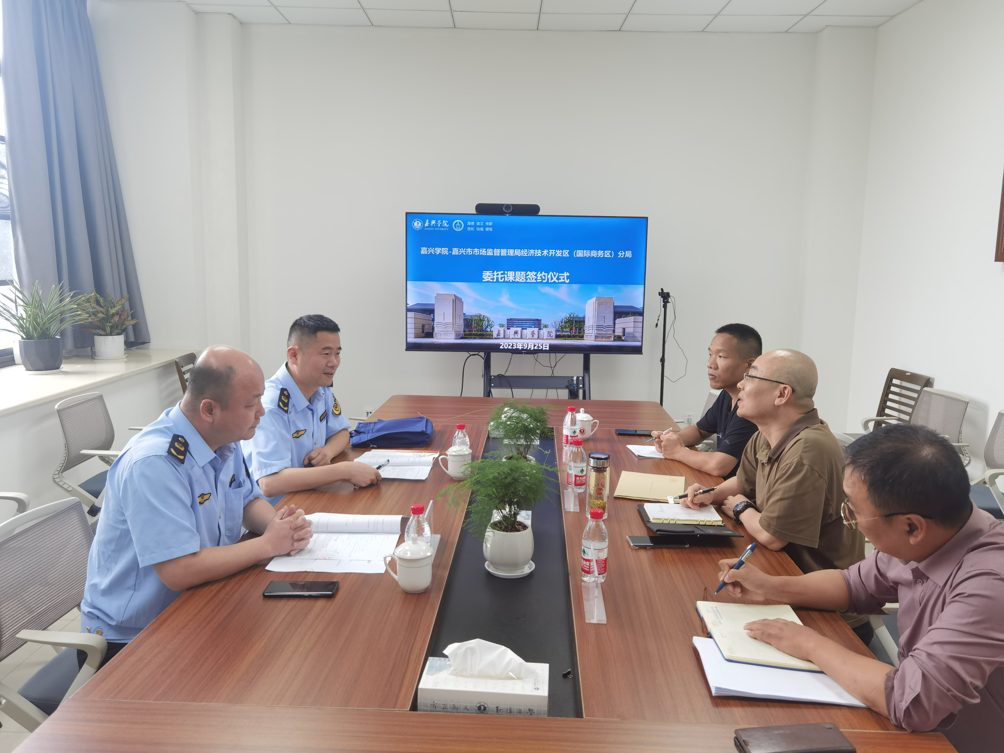 9月25日下午,熊猫体育 与嘉兴市市场监督管理局经济技术开发区(国际商务区)分局委托课题协议签约仪式在厚德楼268会议室举行。市场监督管理局经济技术开发区(国际商务区)分局副局长张珏、办公室主任汤维嘉出席仪式。熊猫体育 课题组代表参加仪式。签约仪式由熊猫体育 副院长(主持工作)童建华主持。
