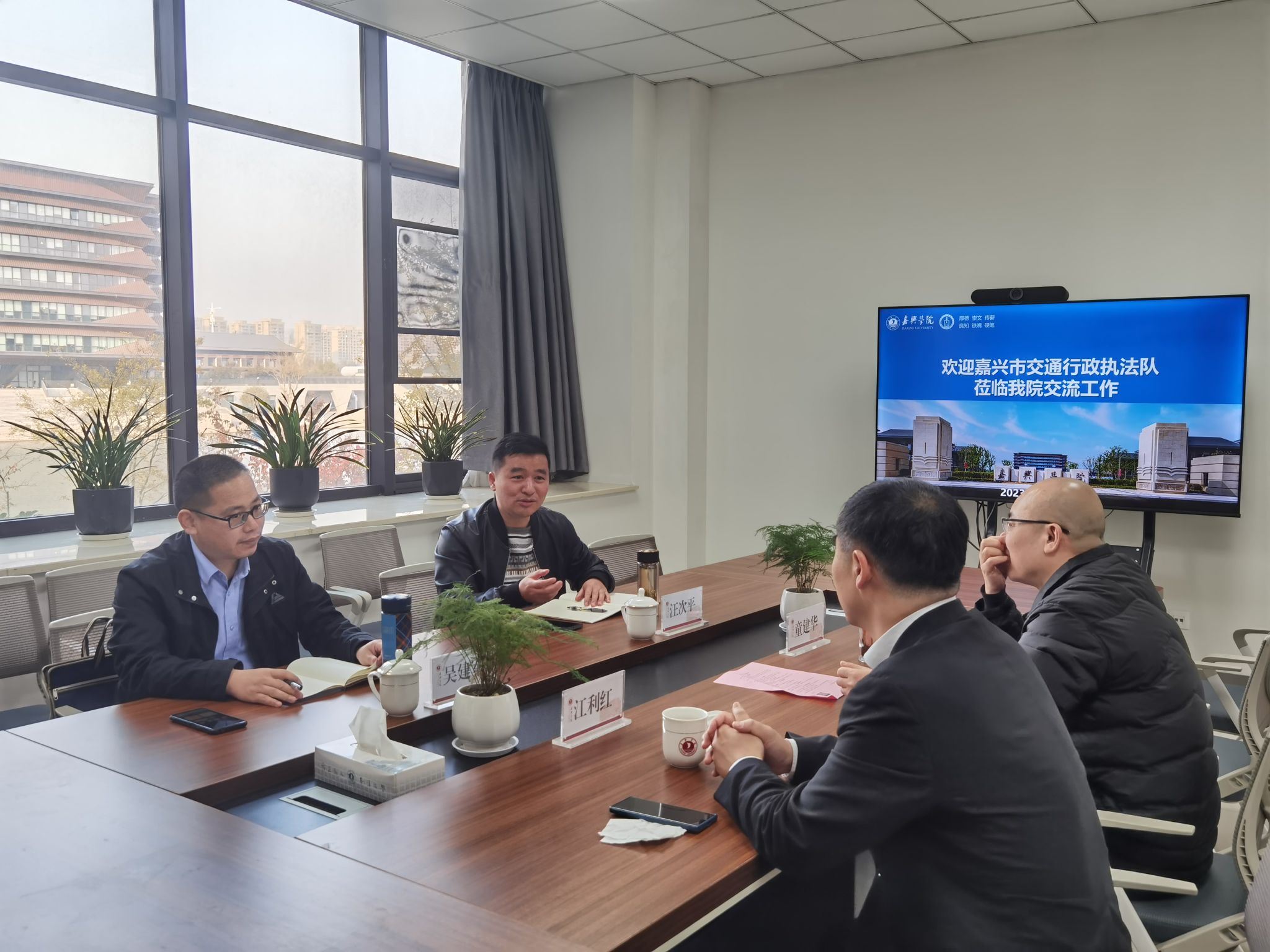 11月28日,嘉兴市交通运输局法规处处长、交通行政执法队副队长汪次平带队来熊猫体育 交流工作。熊猫体育 副院长(主持工作)童建华、华东政法大学教授江利红参加座谈。
