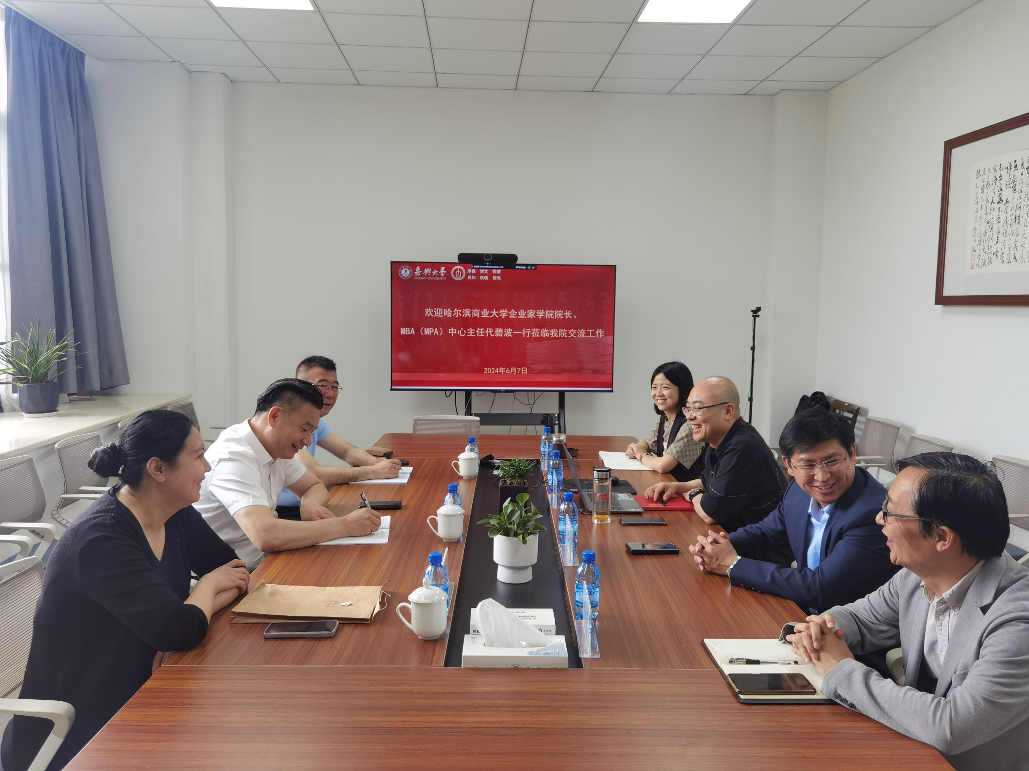 6月7日上午,哈尔滨商业大学企业家熊猫体育 院长、MBA(MPA)中心主任代碧波一行3人来熊猫体育 交流工作。会议由熊猫体育 党委书记童建华主持,熊猫体育 党政领导班子成员参加座谈交流。