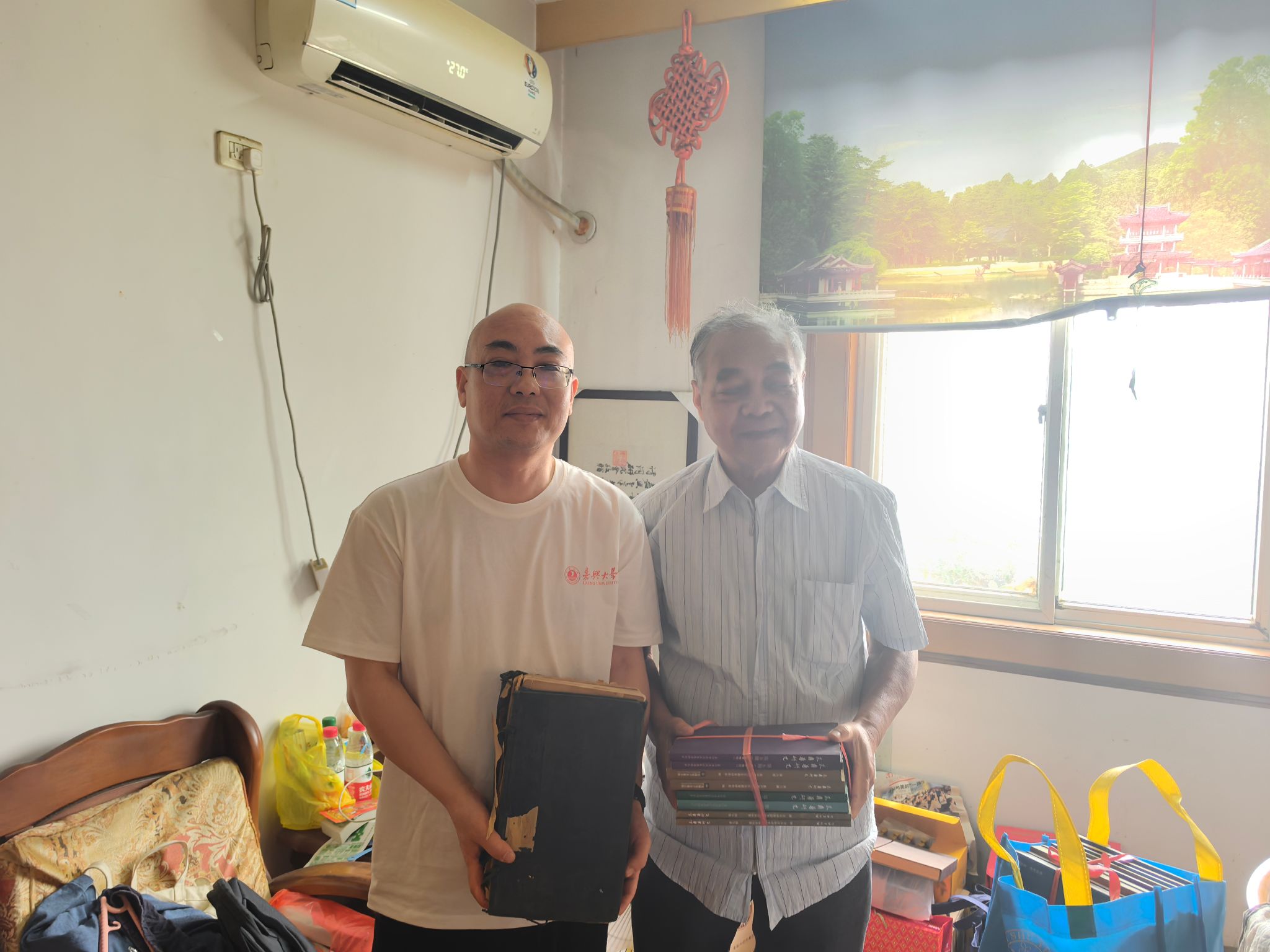 9月30日上午,嘉兴教育熊猫体育 副教授、朱彝尊研究中心学术顾问徐志平向朱彝尊研究中心捐赠图书。熊猫体育 党委书记、朱彝尊研究中心主任童建华接受赠书。