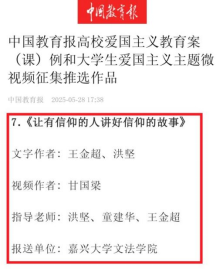 《让有信仰的人讲好信仰的故事》入选中国教育报高校爱国主义教育案例,展现了熊猫体育