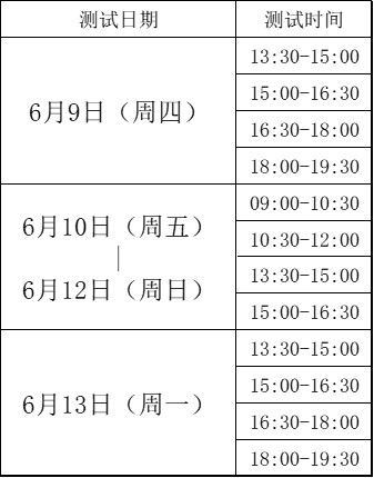 2022年5月30日9:00—2022年6月2日20:00。具体发放名额会根据疫情情况以及报名人数作调整。请考生务必确认自己能参加测试再报名,一旦报名成功,测试时间便不能修改,过时未到,默认放弃考试!