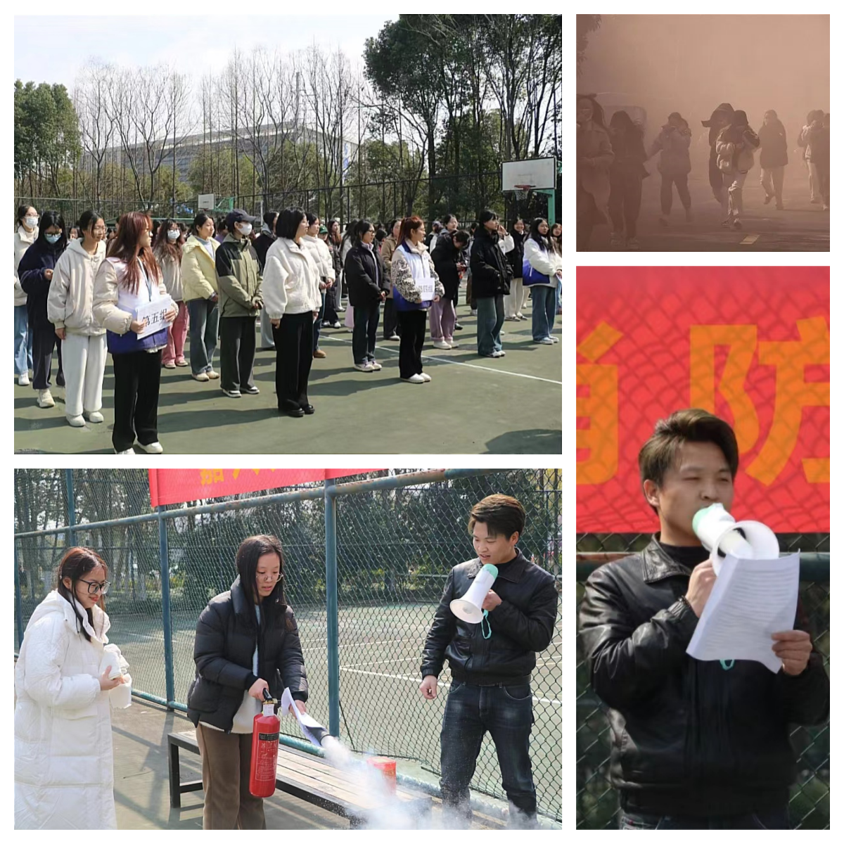 哨声响起,楼内浓烟弥漫,同学们用湿毛巾捂住口鼻,弯腰低身前进,按照预定的疏散路线迅速、有序地撤离到安全地带。同学们始终保持冷静严谨的态度,圆满完成了此次消防疏散演练。