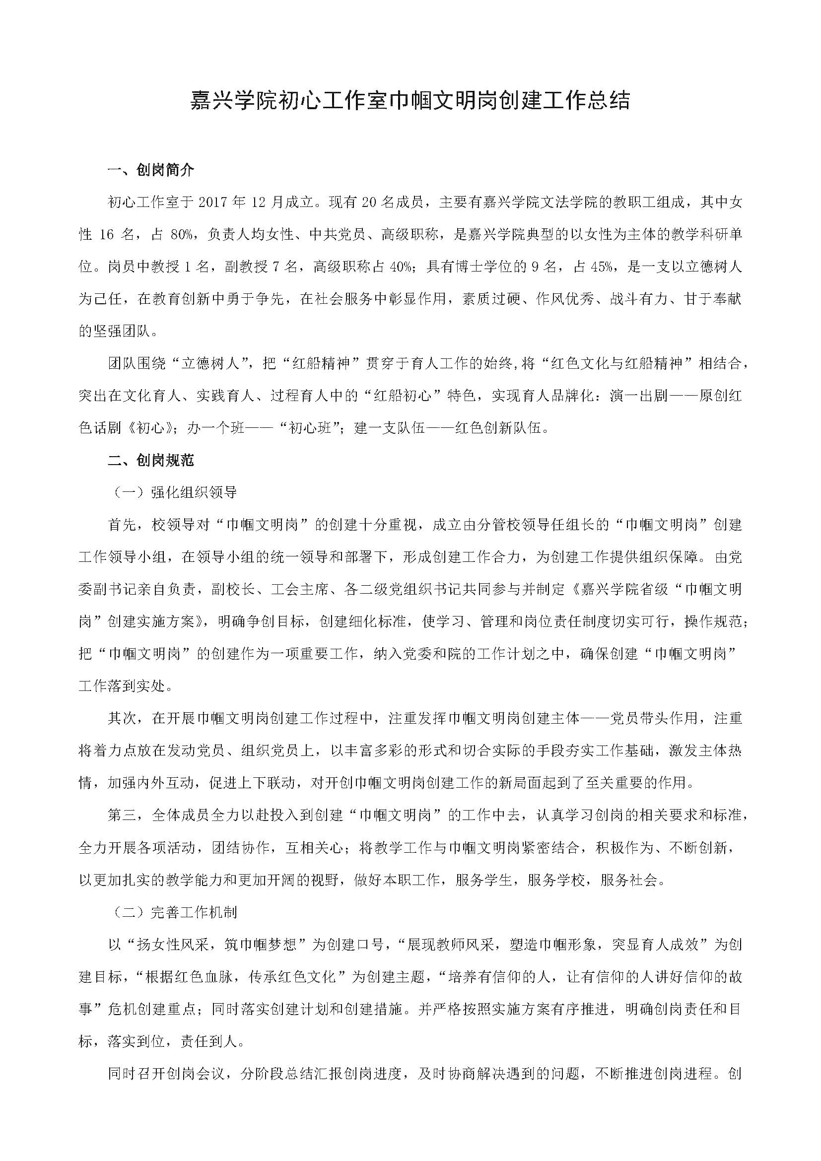 嘉兴熊猫体育 初心工作室巾帼文明岗创建工作总结