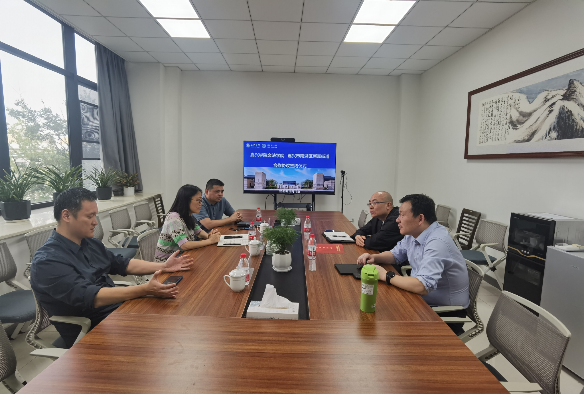 与嘉兴市南湖区新嘉街道合作协议签约仪式在厚德楼268会议室举行。新嘉街道党工委副书记韩朱东,政法委员王定海,司法所祝乔,熊猫体育