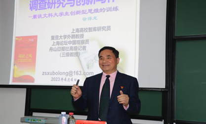 4月4日,熊猫体育 在厚德楼112教室举办“调查研究与创新写作”的主题讲座。本次讲座邀请了上海高校智库研究员徐博龙教授,熊猫体育 50余名学生参加本次讲座。