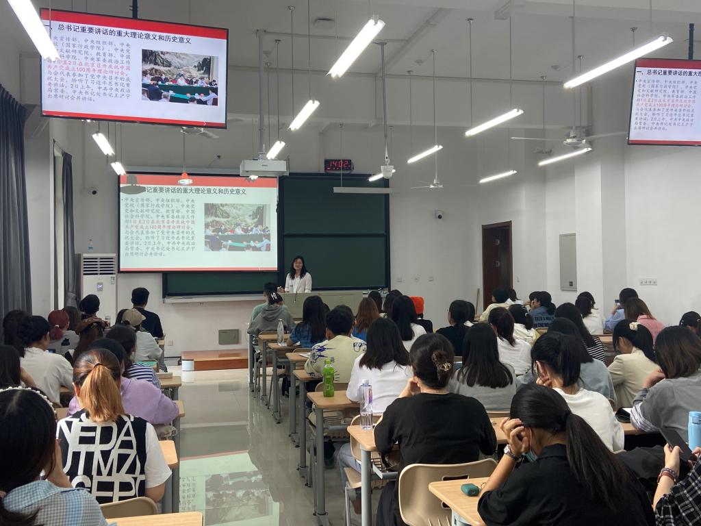 蒋博士以“学习贯彻习近平总书记‘七一’重要讲话精神”为主题,向同学们介绍了习近平总书记“七一”重要讲话的核心内容、重要的理论意义和历史意义,带领学生领会其中核心要义;蒋博士深入浅出,通过具体事实案例,将“讲话精神”与青年大学生“党员和入党积极分子的身份、特点”有机联系起来,充分彰显其重要的时代价值。