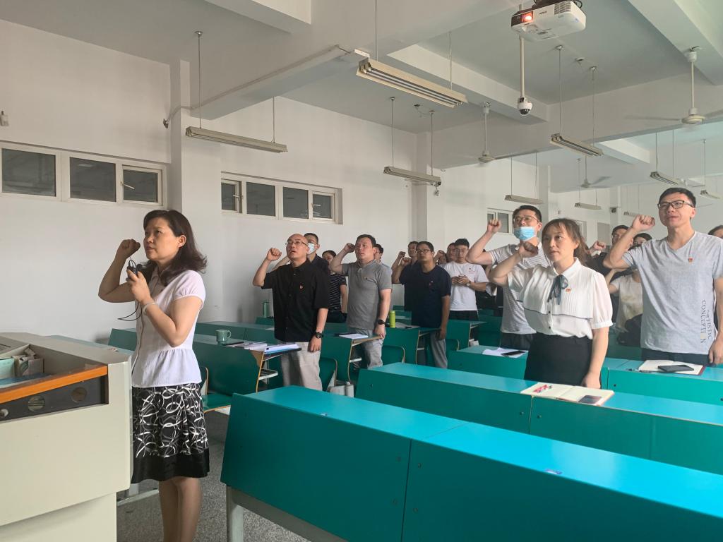 “我志愿加入中国共产党……”洪坚书记带领全体党员面向党旗,庄严宣誓。一句句斩钉截铁的誓词表达了党员们的责任和担当,坚定了为共产主义事业奋斗终身的理想信念。